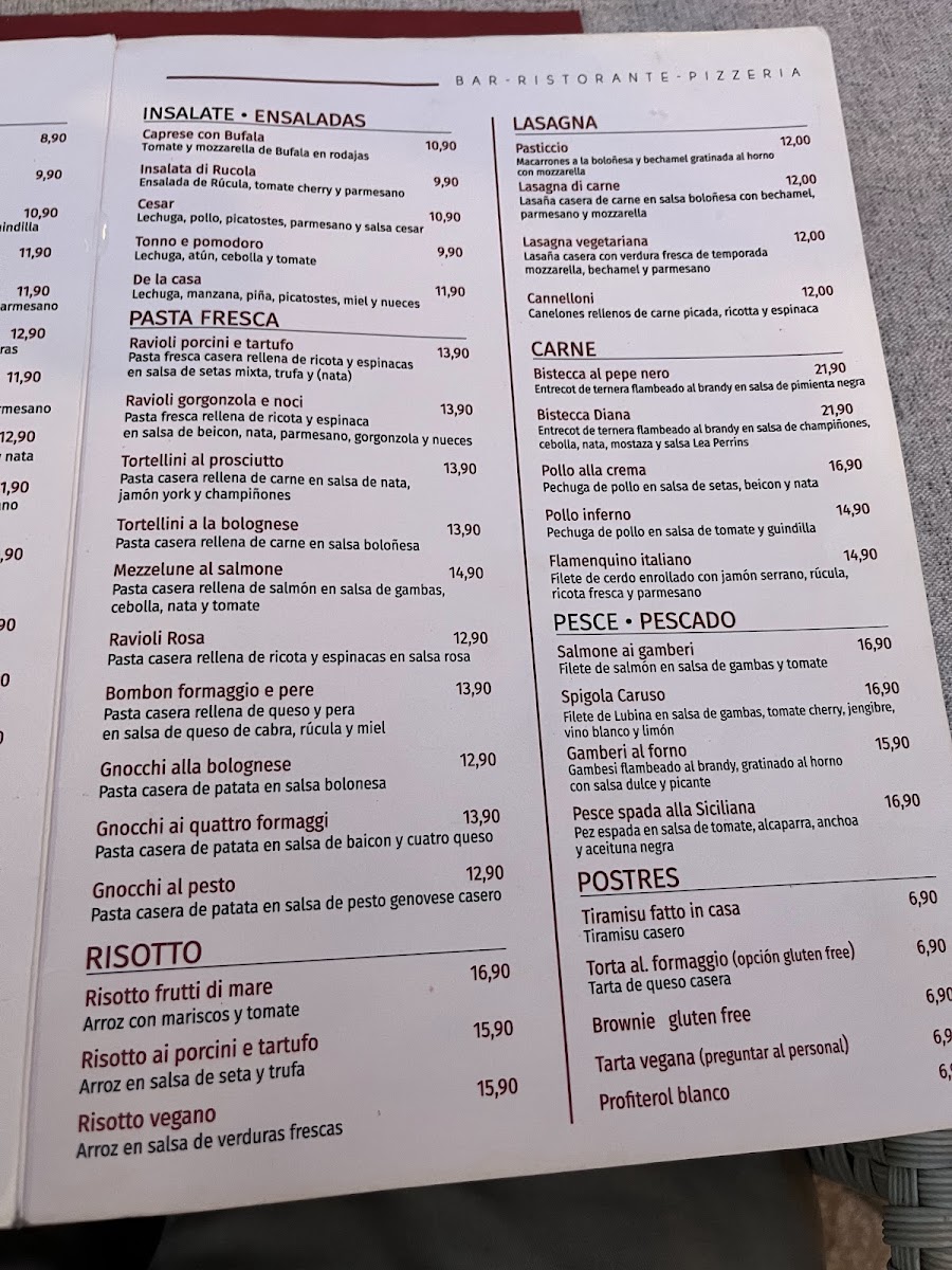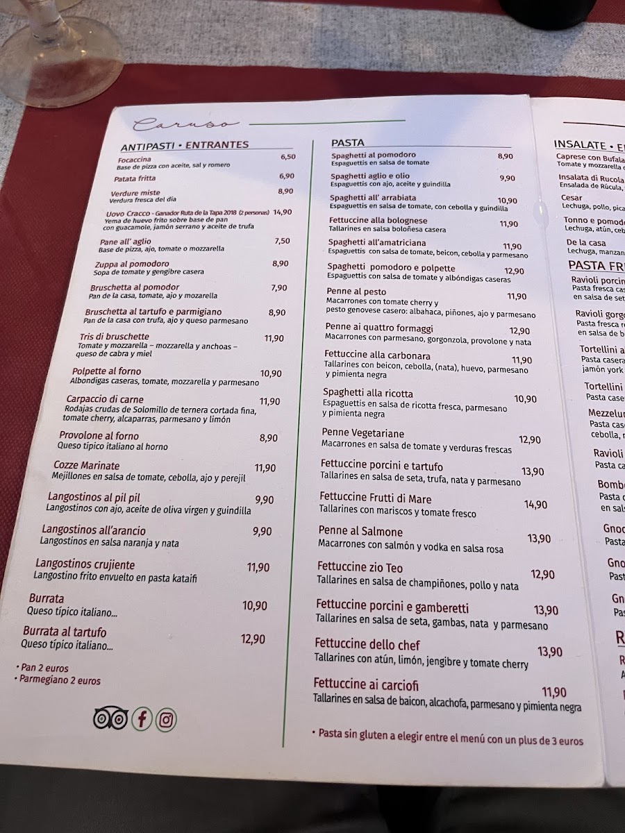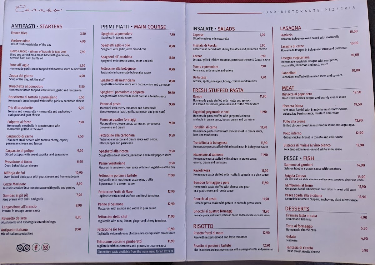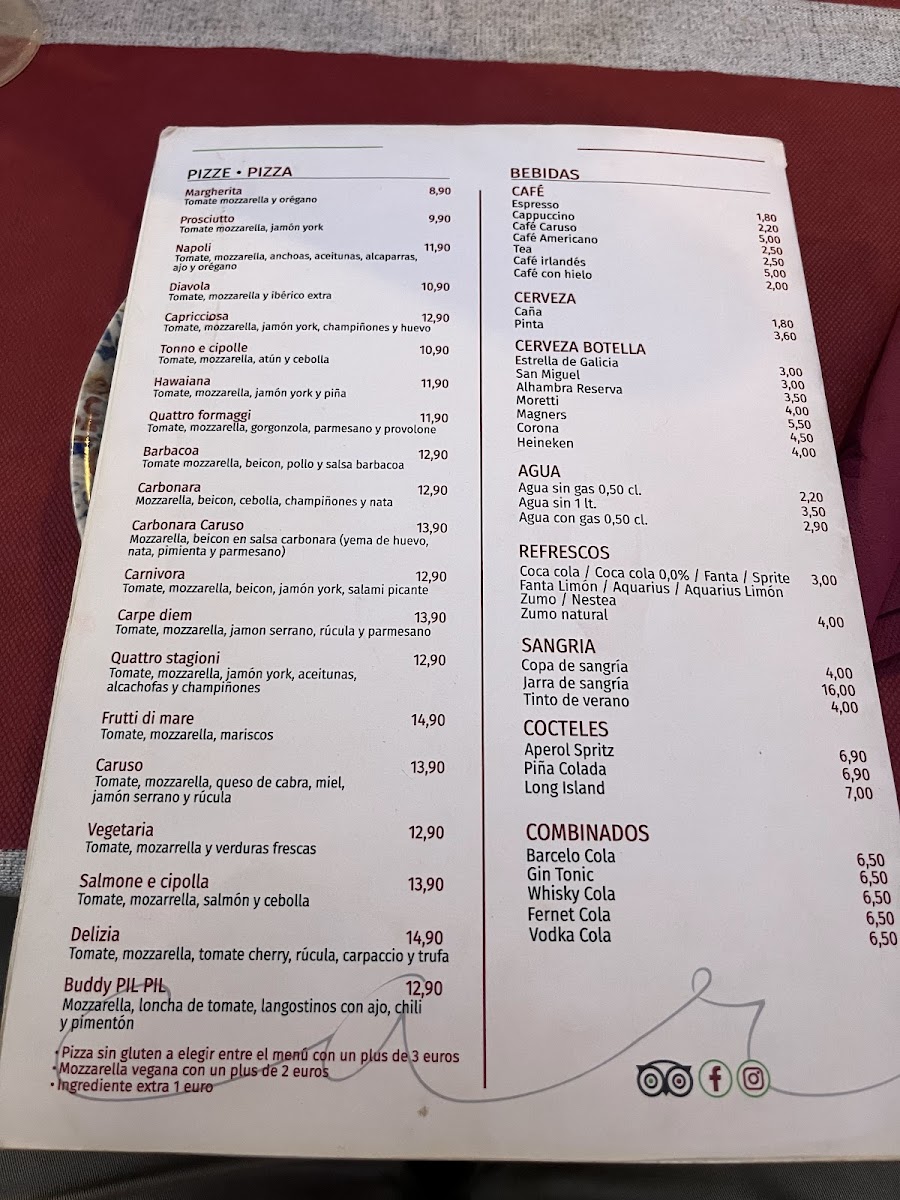 Restaurante Pizzería Italiana - CARUSO Menu